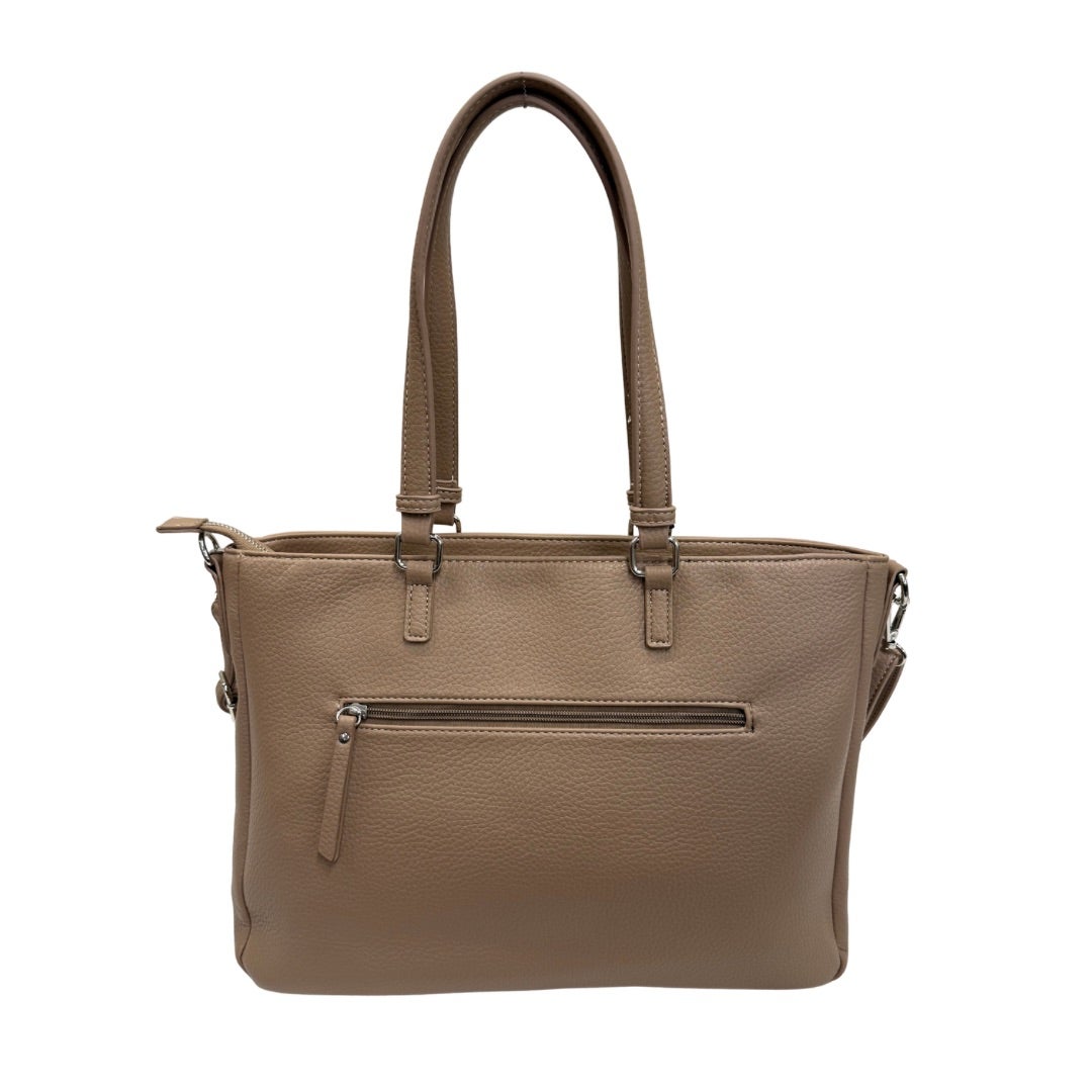 Täydellinen laukku työkaveriksi! Laukussa on oma tasku 14" tuuman läppärille, käytännöllisiä taskuja ja erillinen etutasku, jossa monta eri taskua tärkeille tarvikkeille ja papereille. Laukussa kiinteät kantokahvat sekä irroitettava ja portaattomasti säädettävä olkahihna. Laukun koko n. 40x28x11cm