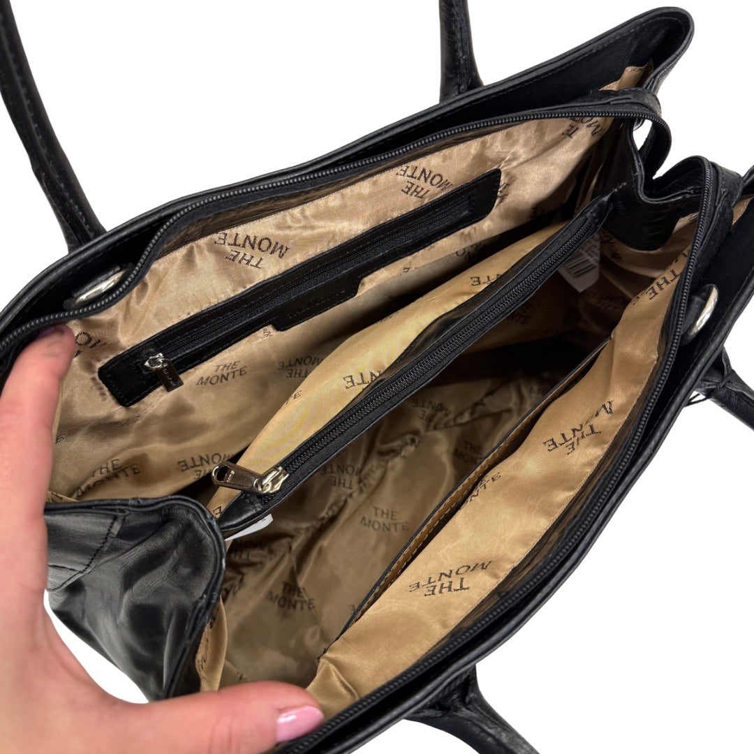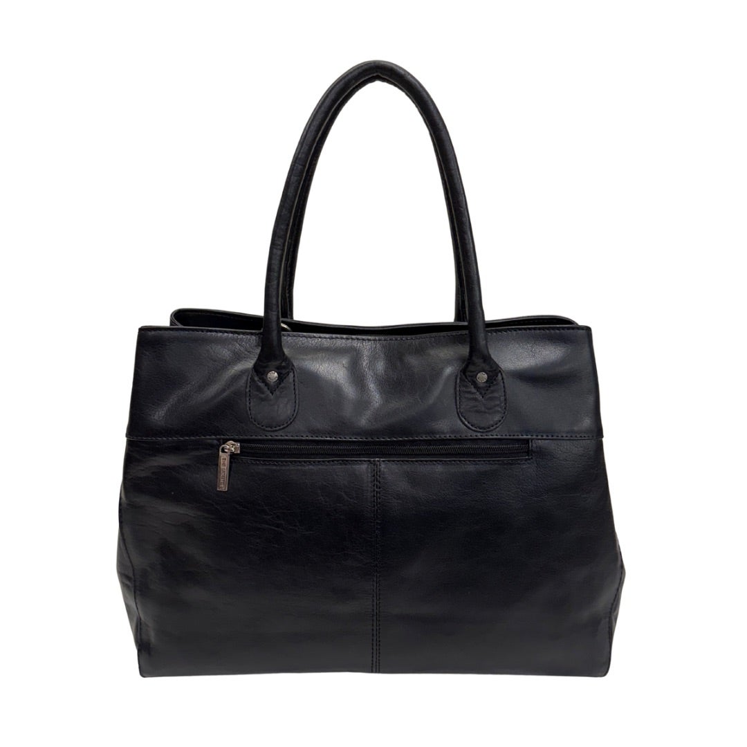 - Laukun sisällä kaksi osaa, joiden välissä vetoketjutasku. Lisäksi pienempi vetoketjutasku ja avoin pikkutasku