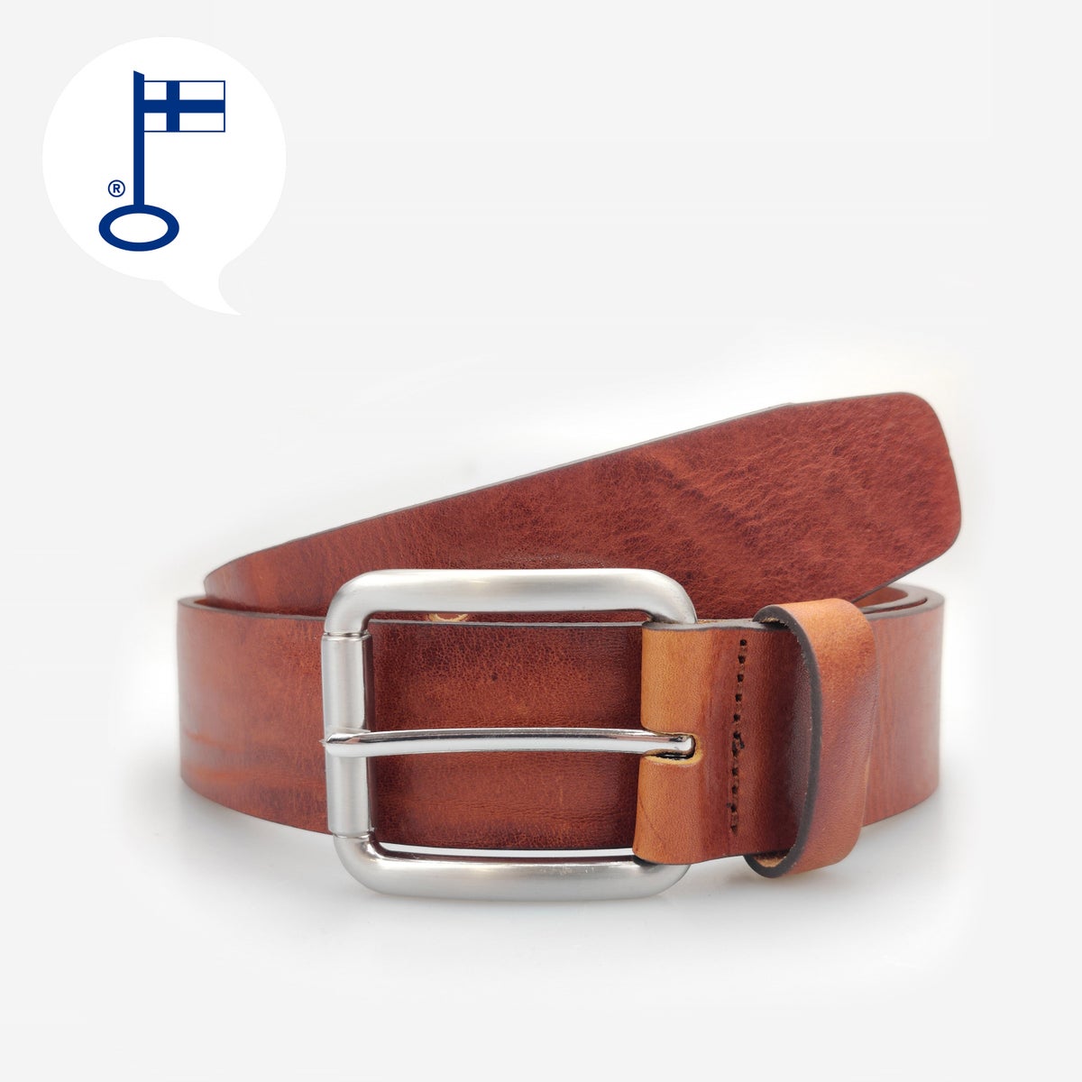 Miesten 4cm leveä farkkuvyö aitoa nahkaa. Valmistettu Suomessa.