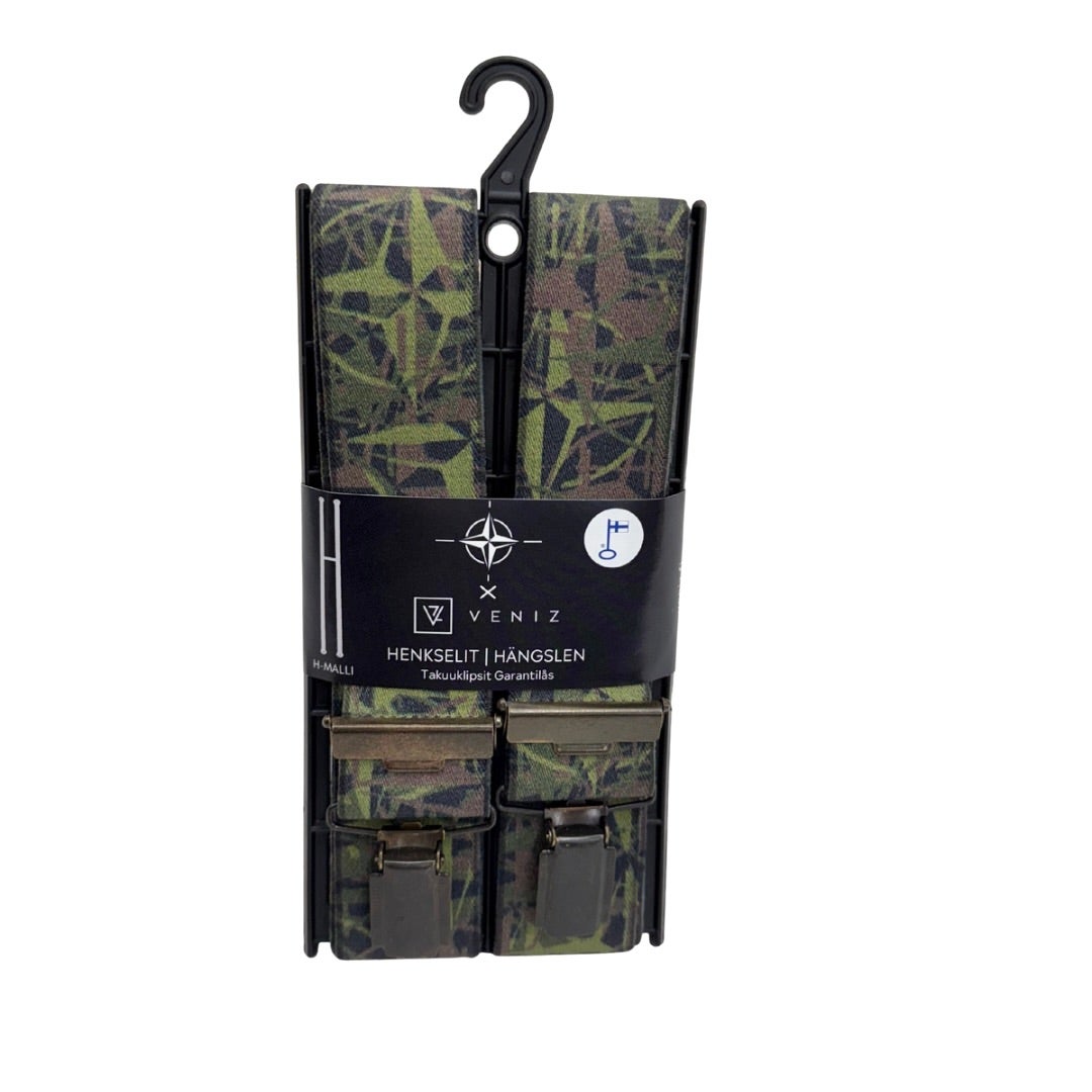 Miesten olkaimet eri väreissä. H-malli, 120cm, säädettävä pituus. Olkaimissa käytettävät napit, soljet ja klipsit ovat kaikki nikkelivapaita, ja olkaimissa on takuulukot.