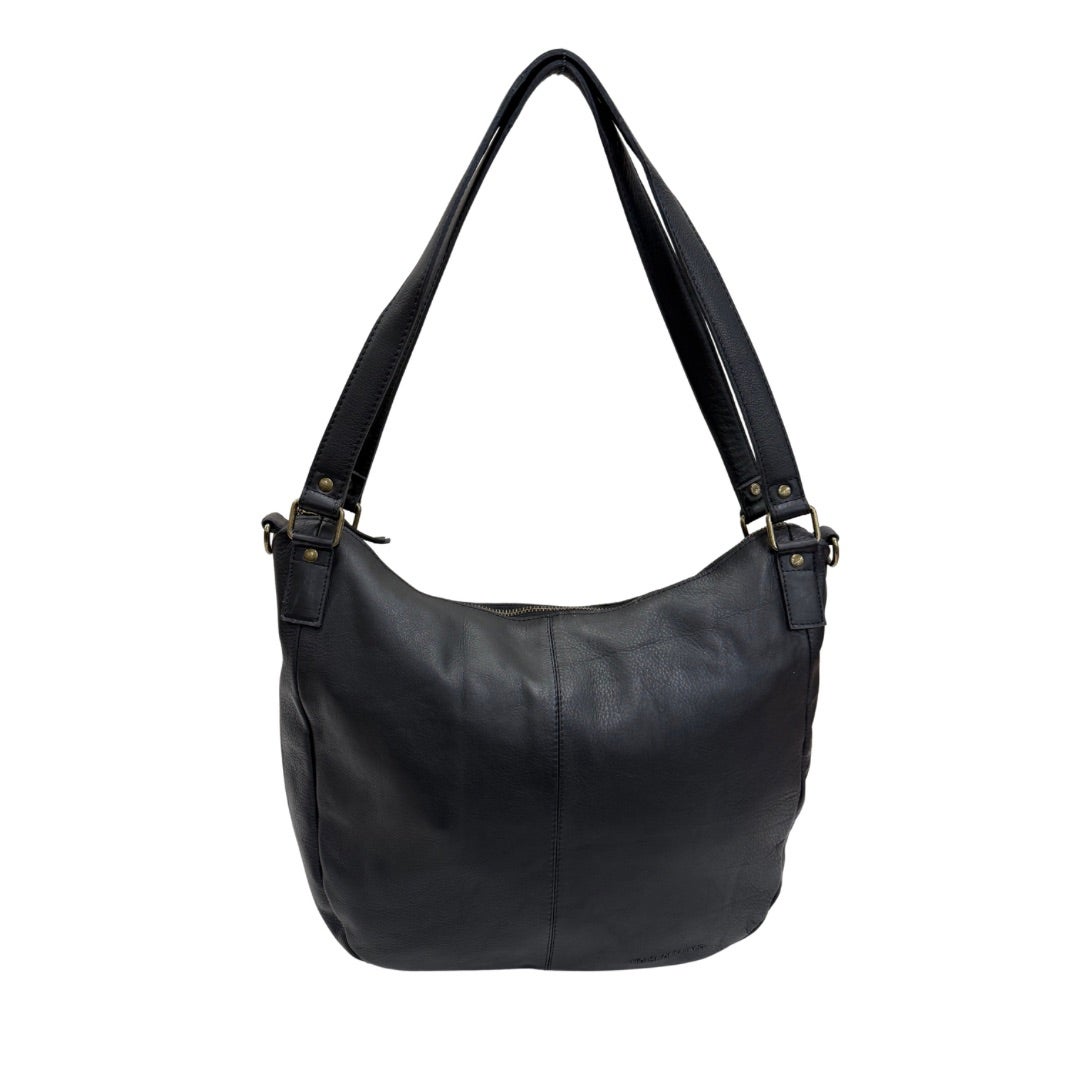 Tyylikäs mattapintainen nahkalaukku, jossa kaksi kiinteää kantokahvaa ja irrotettava, portaattomasti säädettävä olkahihna (77-130cm). Laukun ulkopuolella vetoketjutasku. Sisällä nahkalaukussa vaalea kangasvuori, kaksi avointa pikkutaskua sekä vetoketjutasku. Laukku suljetaan vetoketjulla.