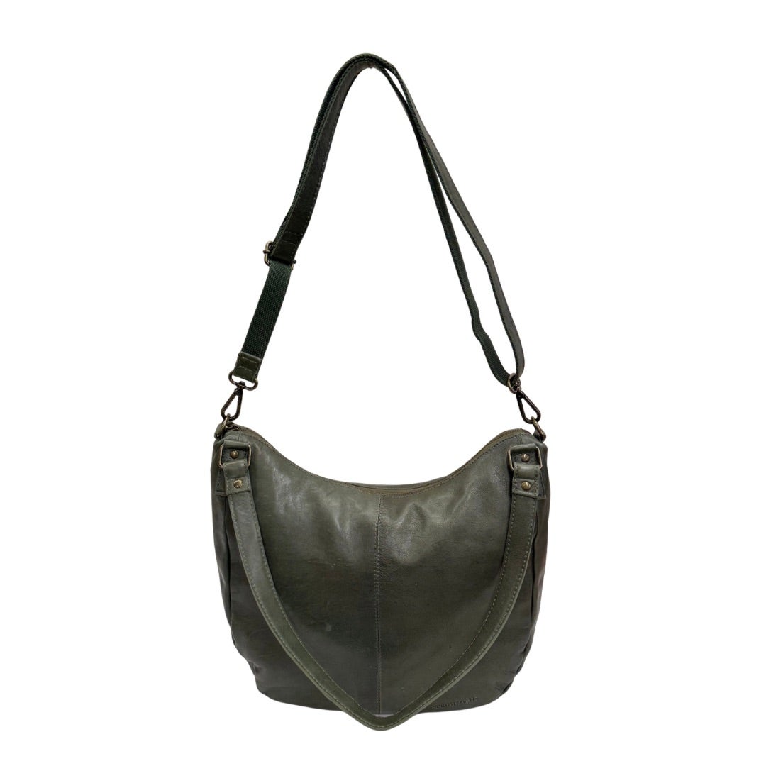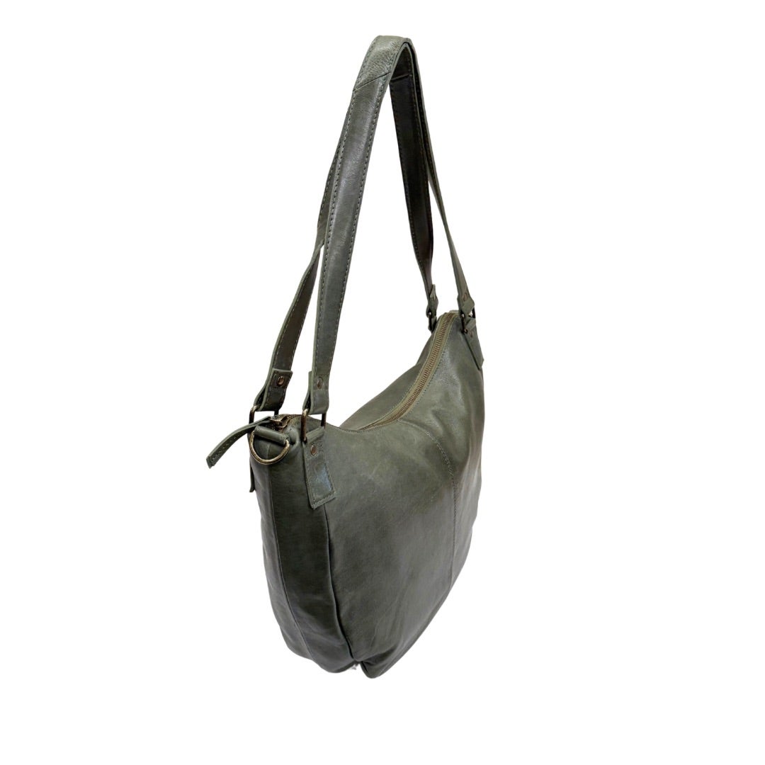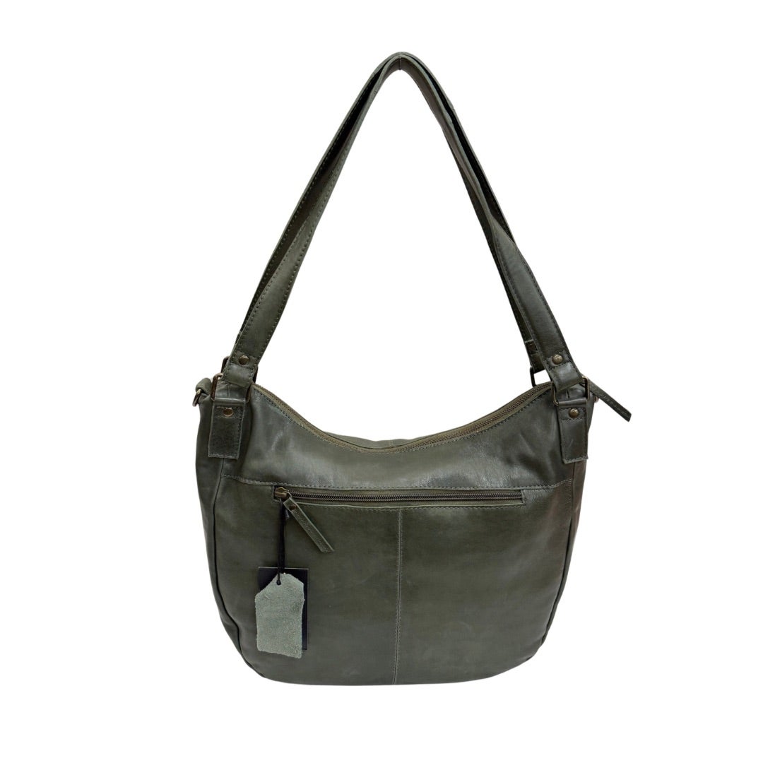 Tyylikäs mattapintainen nahkalaukku, jossa kaksi kiinteää kantokahvaa ja irrotettava, portaattomasti säädettävä olkahihna (77-130cm). Laukun ulkopuolella vetoketjutasku. Sisällä nahkalaukussa vaalea kangasvuori, kaksi avointa pikkutaskua sekä vetoketjutasku. Laukku suljetaan vetoketjulla.