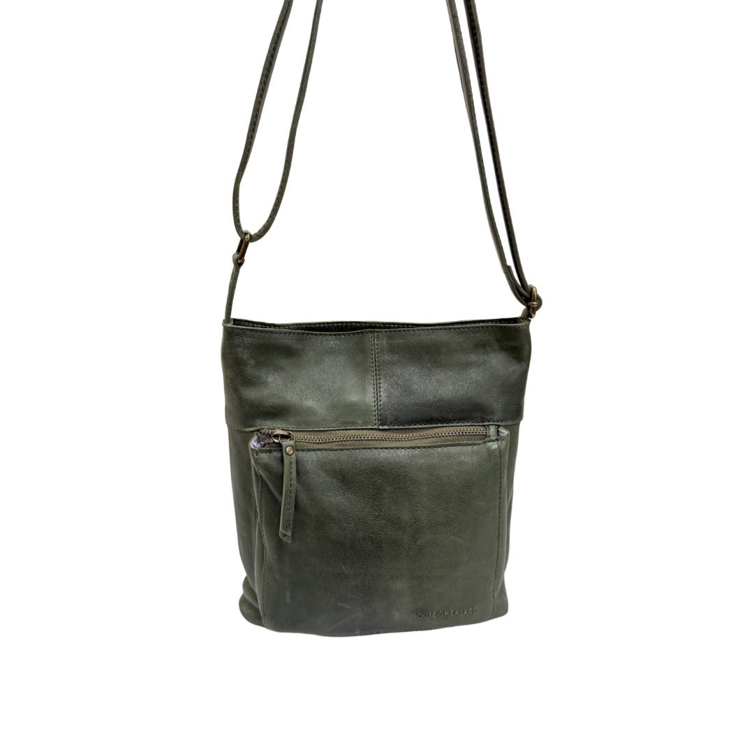 Laadukas nahkalaukku, pehmeää nahkaa. Säädettävä olkahihna. Laukun etu- ja takapuolella vetoketjutasku. Laukku suljetaan vetoketjulla ja laukun sisältä löytyy vetoketjutasku ja kaksi avointa pikku taskua. Laukun koko n. 25x22x4cm