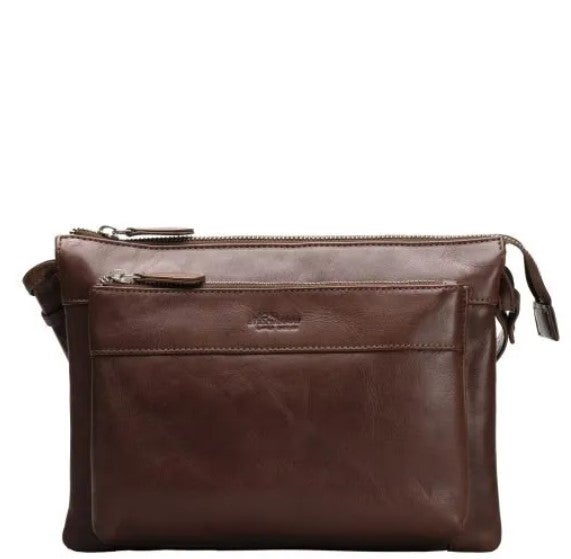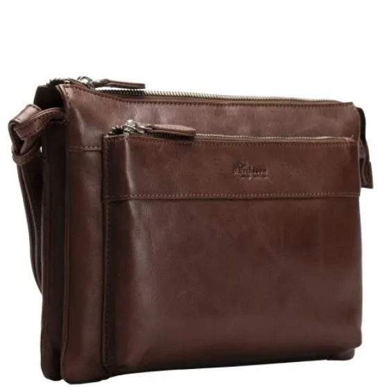 Laadukas nahkalaukku, jossa monta taskua. Suljetaan vetoketjulla ja sisällä kaksi osiota. Laukun sisällä lisäksi vetoketjutasku, kännykkätasku, korttitaskuja ja kynäpidikkeitä. Etupuolella tilava tasku ja takana vetoketjutasku. Portaattomasti säädettävä hihna. Koko n. 25x18x7cm Olkahihnan leveys 2cm ja säädettävissä 65-135cm välillä.