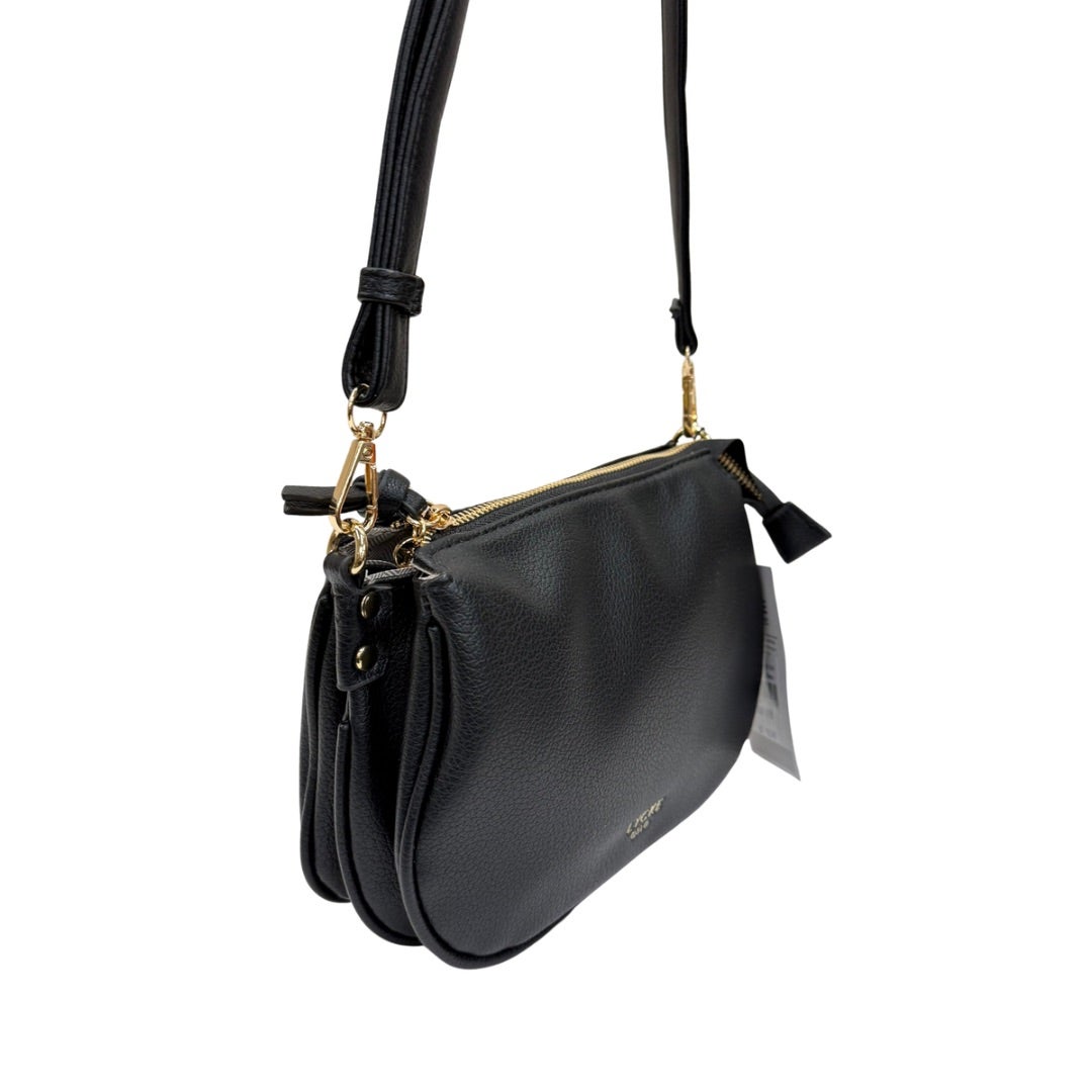 - Laukku suljetaan vetoketjulla. Sisällä kaksi osaa, joiden välissä avoin tasku.