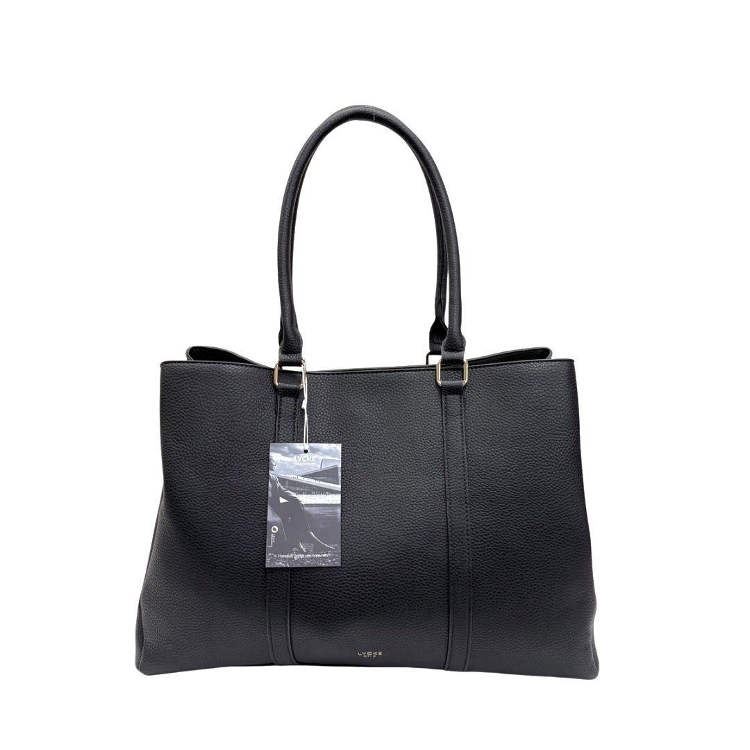 Täydellinen laukku arkeen! Tässä isossa keinonahkalaukussa on kolmeosaa, joista keskimmäinen on vetoketjutasku ja sivuilla magneettinapilla kiinnitettävät isot taskut. Sivuilla olevissa taskuissa toisessa pieni vetoketjutasku ja toisessa kaksi avointa taskua. Laukussa kiinteät kantokahvat ja irrotettava, säädettävä olkahihna. Laukun koko n. 30x40x15cm