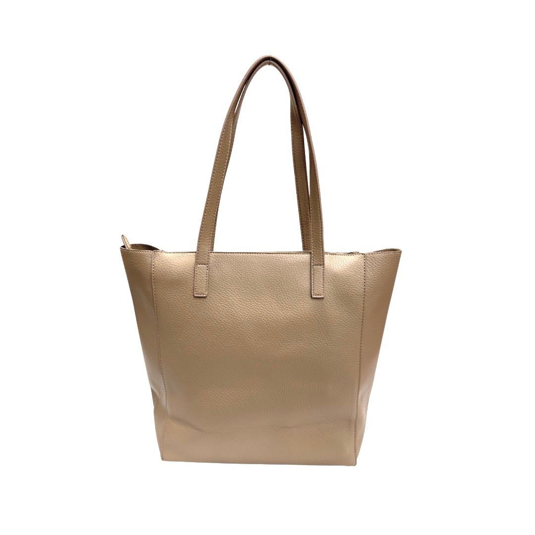 Tyylikäs keinonahkalaukku. Vuoreton malli, jossa sisäosa mokkaajäljittelevää kangasta. Laukku suljetaan vetoketjulla ja sisällä vetoketjutasku ja avoin pikku tasku. Kaksi kantokahvaa. Koko n.34x30x14cm