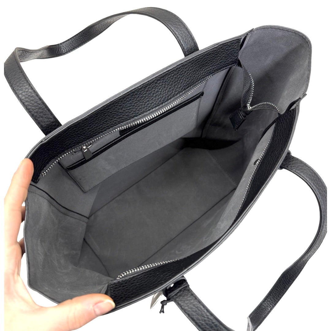 Tyylikäs keinonahkalaukku. Vuoreton malli, jossa sisäosa mokkaajäljittelevää kangasta. Laukku suljetaan vetoketjulla ja sisällä vetoketjutasku ja avoin pikku tasku. Kaksi kantokahvaa. Koko n.34x30x14cm