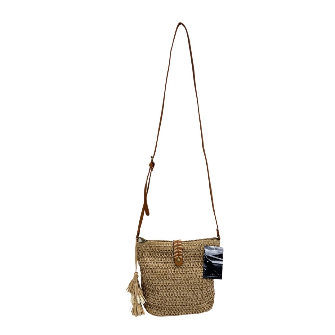 Olkalaukku kevyttä punottua niiniä. Yksityiskohdat keinonahkaa. Laukussa säädettävä olkahihna. Suljetaan vetoketjulla ja vetoketjun päälle tulevalla magneettikiinnitteisellä hihnalla. Laukun sisällä kangasvuori ja vetoketjutasku. Koko n. 24x25x11cm