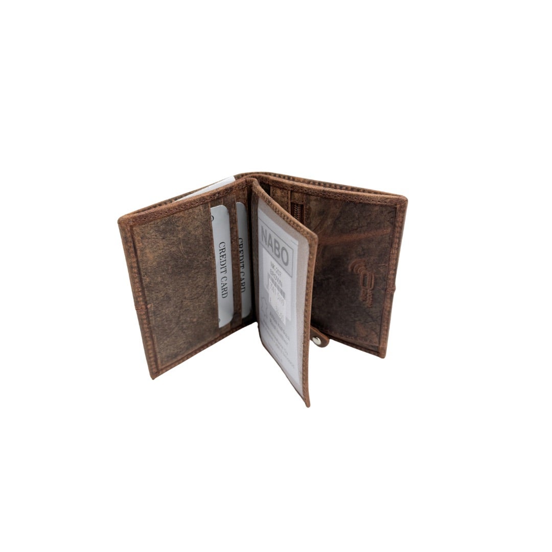 Upea rasvanahkainen lompakko Nabolta. Lompakossa 10 korttipaikka, joista yksi läpinäkyvä. Yksiosainen setelitasku ja kolikkotasku vetoketjulla. Koko: 10,5x8x2cm. RFID-etälukusuojatut. Aitoa nahkaa.